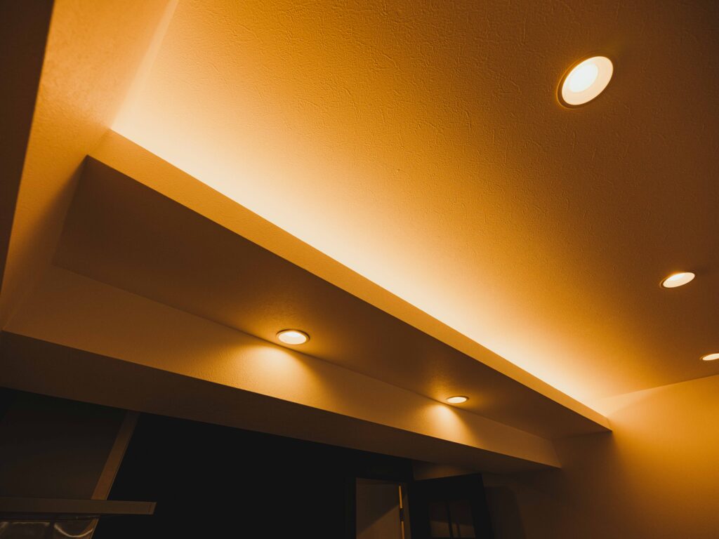 光源を主張させないことで視線は自然と上へ抜け、空間全体がのびやかに感じられます。