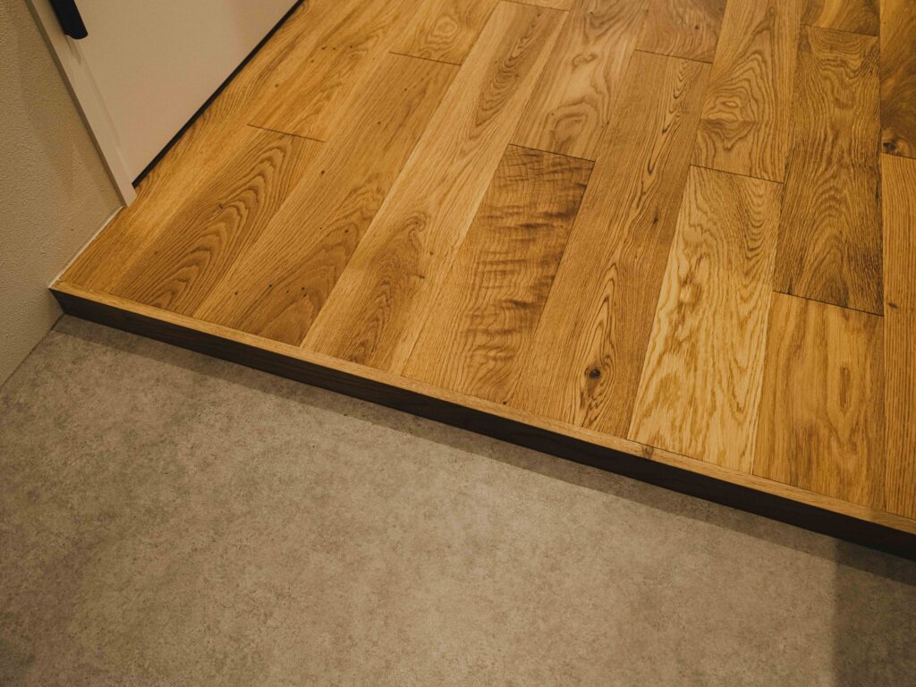 朝、カーテンを開けると、柔らかな光がオーク材の床をやさしく照らす。