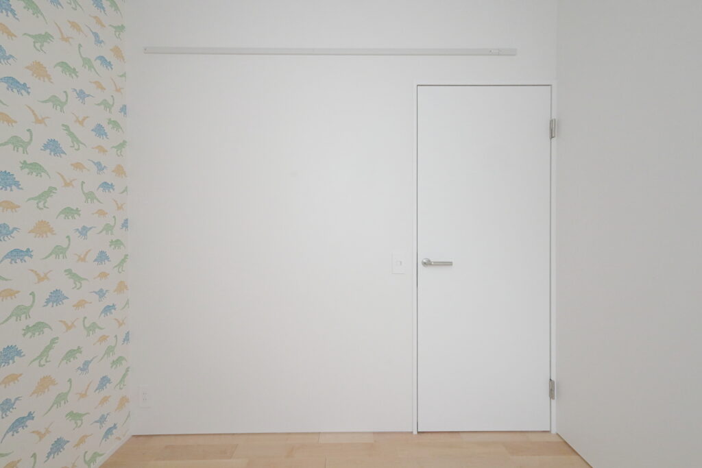壁や天井は全体を塗装仕上げにして、子ども部屋のみアクセントクロスを採用。