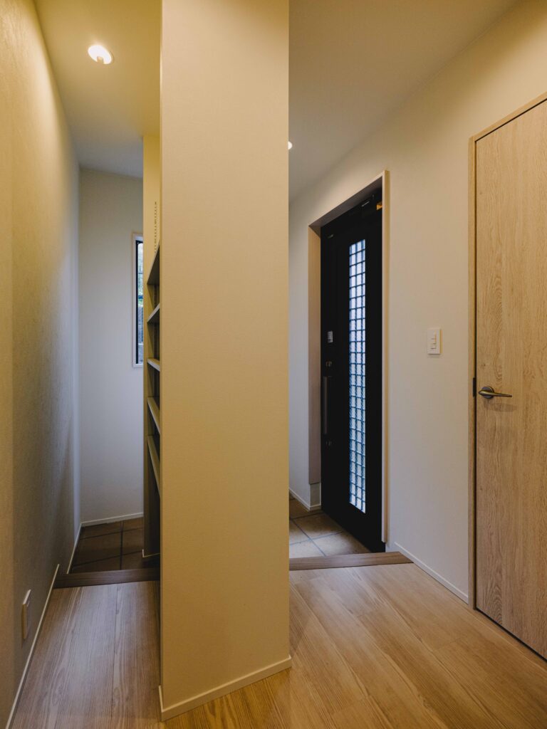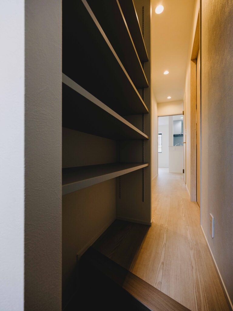 玄関入ってすぐのスペースに、たっぷりとした下足入れを新設。
