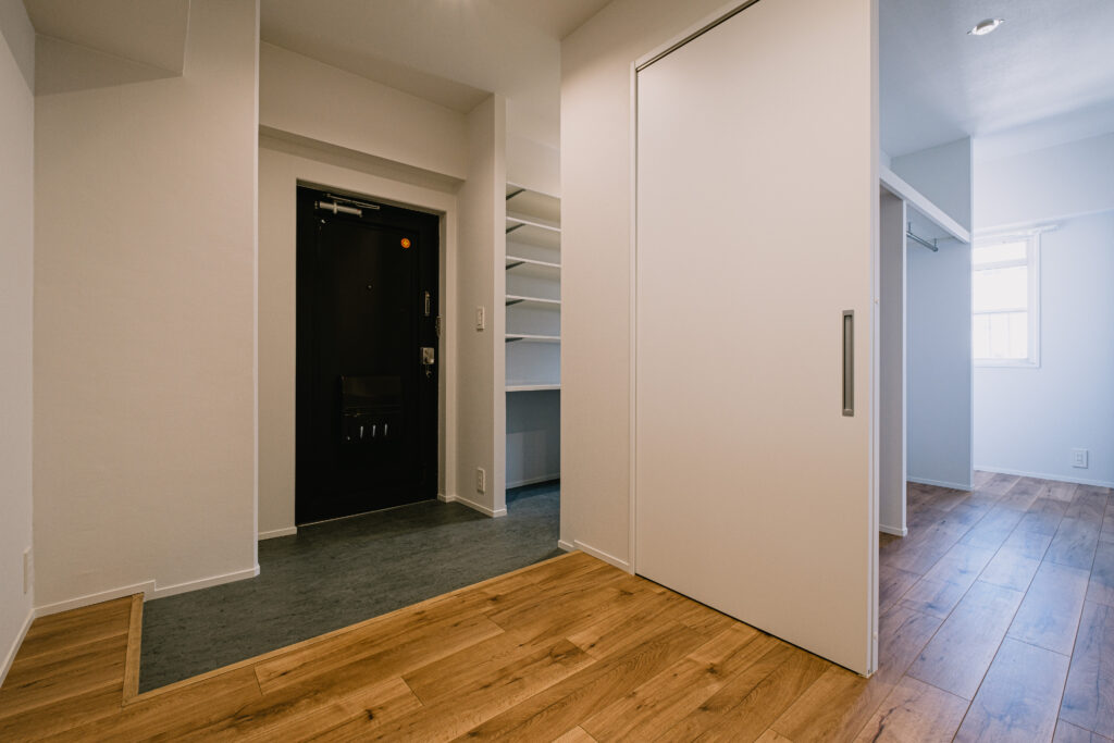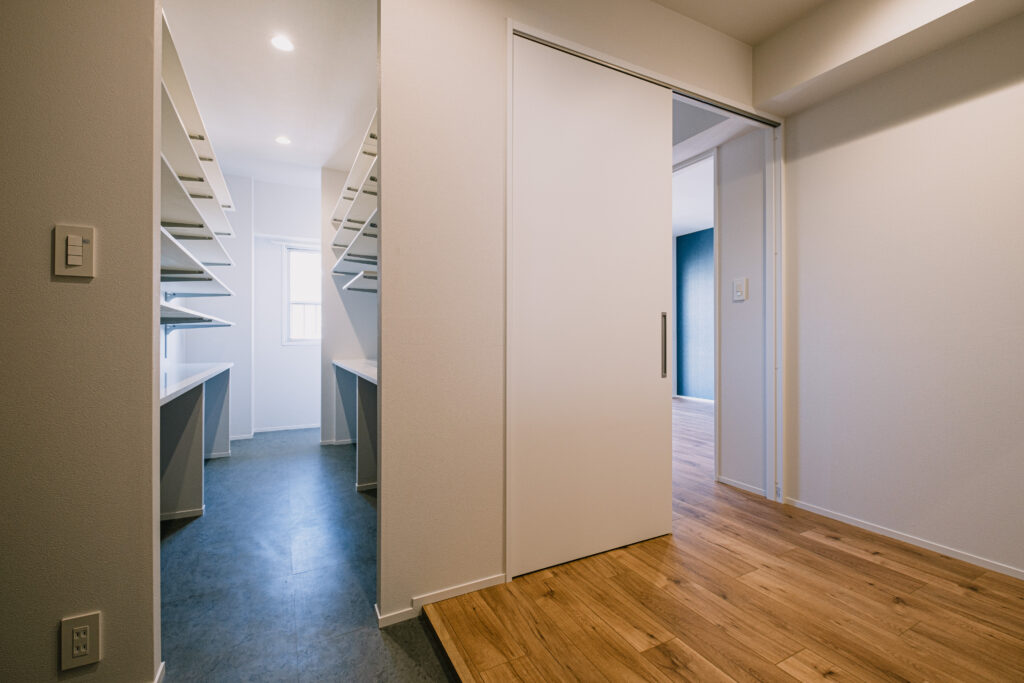 玄関前のシューズインクロークは、ウォークインクローゼットへと続きます。